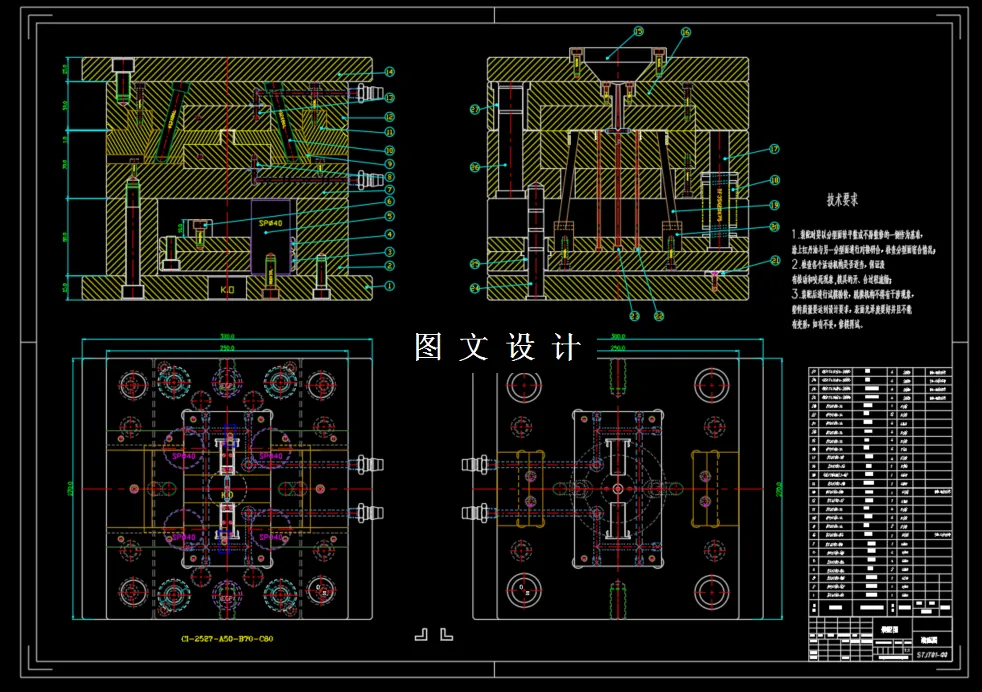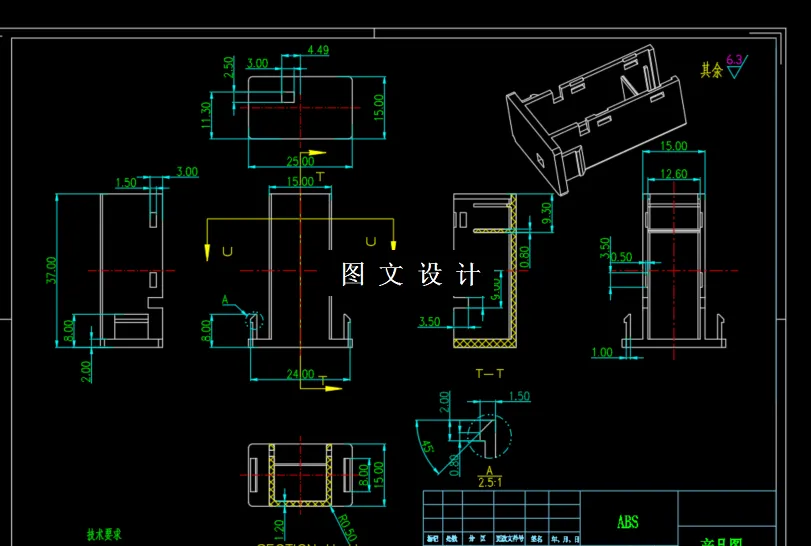 本次设计在针对产品进行工艺性分析后,确定模具分 型面、 型腔数目、 浇口形式、 位置大小; 其中最重要的是确定型芯和型腔的结构, 以及它们的定位和紧固方式。此外还进行了脱模机构的设计,合模导向机构的设 计,冷却系统的设计等。最后绘制完整的模具装配总图和主要的模具零件图及编 制成型零部件的制造加工工艺过程卡片。