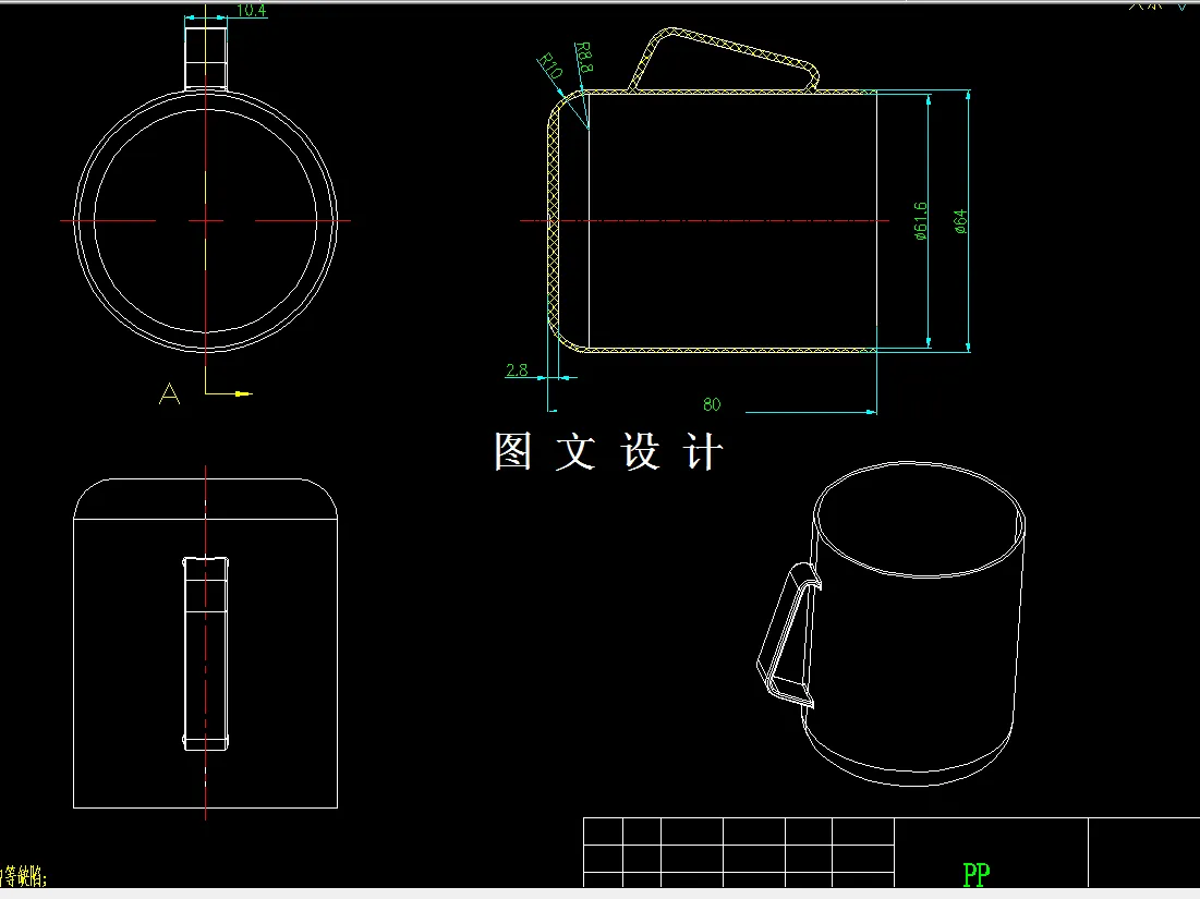 本文论述的带把水杯注塑模具采用三板式结构,即浇注系统凝料和制件在不同的分型面脱出,采用一模两腔的型腔布置,最后利用推杆将制件推出。哈弗块侧抽芯,推板推出。