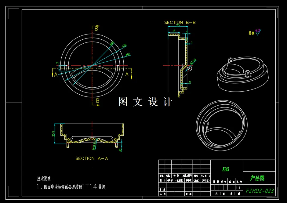 本设计主要是针对杯盖塑件的模具设计过程。由于杯盖前后盖都具有侧孔部分,所以本设计选用了侧向分型与抽芯机构采用一模两腔,侧进胶,定模隧道滑块侧抽芯,推杆退出,假三板模的设计方案。