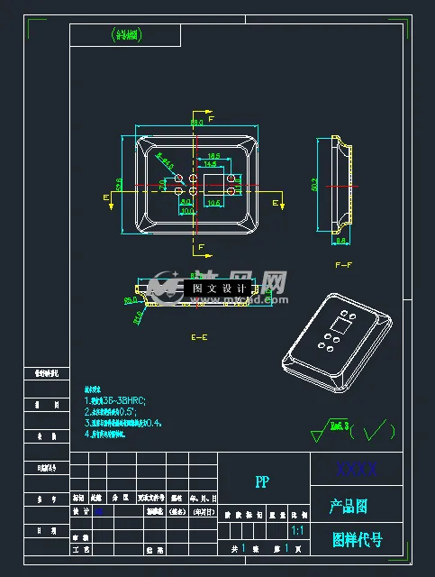 本次设计中,采用了计算机辅助设计软件,其中包括二维设计软件AutoCAD绘制模具的总装图与非标的零件工程图,采用了三维软件进行了塑件的建模与整体装配建模。 本次设计来源于生活实践中,应用非常广泛,采用计算机辅助设计软件大大的提高了设计效率。通过完成了对应设计参数的计算与校核。经过计算校核,本套设计满足实践需求。