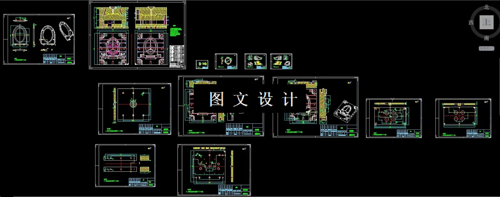 本次设计的产品为马桶后盖,本次设计在针对产品进行工艺性分析后,确定模具分 型面、 型腔数目、 浇口形式、 位置大小; 其中最重要的是确定型芯和型腔的结构, 以及它们的定位和紧固方式。此外还进行了脱模机构的设计,合模导向机构的设 计,冷却系统的设计等。