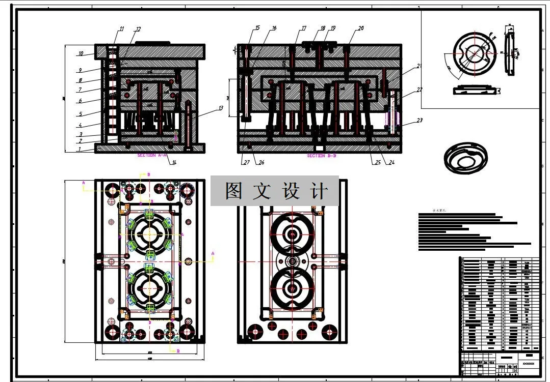 在本模具的具体设计过程中,根据塑料制品的外观要求,了解塑件的用途,分析塑件的工艺性、尺寸要求以及尺寸精度等技术要求,经讨论分析,最终对该模具采用一模两腔,点浇口进料;经过对各参数的多次校核,最终选择了型号为HTF250的注射机;通过CAD和UG绘制二维总装图、零件图以及模具3D图,系统地运用简要文字、简明示意图以及计算等分析塑件,从而对该塑件作出合理的模具设计。
