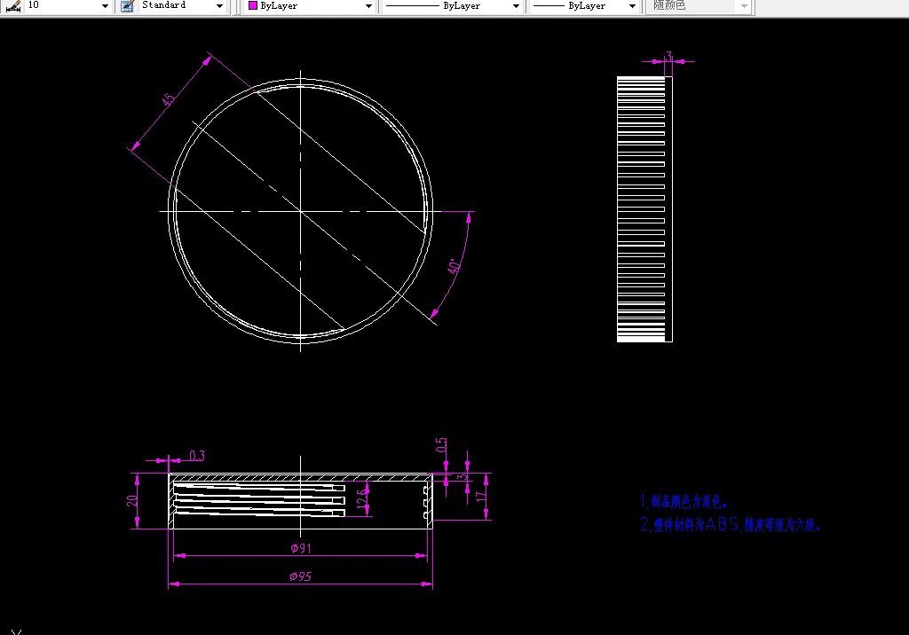 针对瓶盖的具体结构,该模具是设计重点是在侧浇注系统及分型面的设计方面。模具采用一模2腔的侧浇口进浇,采用滑块内抽。其优点在于模具结构简单,提高制造精度,节约材料,大大提高了生产效率以及经济利益。