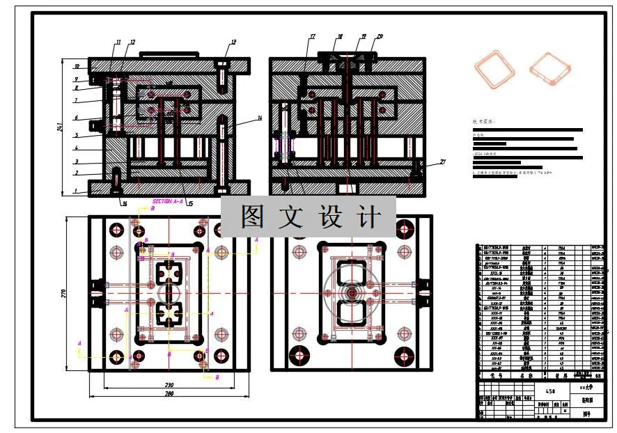 本论文根据实际需要设计了一种塑料外壳,并对其相应的成型模具进行了设计。首先,综合考虑该支架的使用性能、工艺性能和经济性,选用ABS作为原料。其次,对设计好的塑料支架进行性能以及工艺参数分析,根据相关的数据对模具进行参数选定与设计。确定合适的分型面位置、模具型腔的数量和排布方式后,选择注射机的型号和规格,设计浇注系统,并计算成型零件的工作尺寸,设计模具推出机构,选择合适的模架。最后,用UG软件和AutoCAD软件绘制模具的装配图和非标准零件结构图。为了保证塑件外观质量要求,模具采用侧浇口单分型面的注射模;通过对塑件结构进行分析,分型面选择在塑件截面积最大且有利于开模取出塑件的表面;模具为一模二腔结构,采用环形平衡式对称排列;注射机为XS-ZY-125型螺杆注射机;浇注系统采用垂直式主流道,平衡式分流道;推出方式采用推杆推出,每个塑件设立4根截面直径为5mm的推杆;排气系统利用分型面之间、推杆与模板之间的间隙进行排气,其值为0.03mm~0.05mm;模架选用A型模架,型号为:W×L=230mm×270mm,定模板厚度50mm,动模板厚度60mm,垫块厚度80mm。