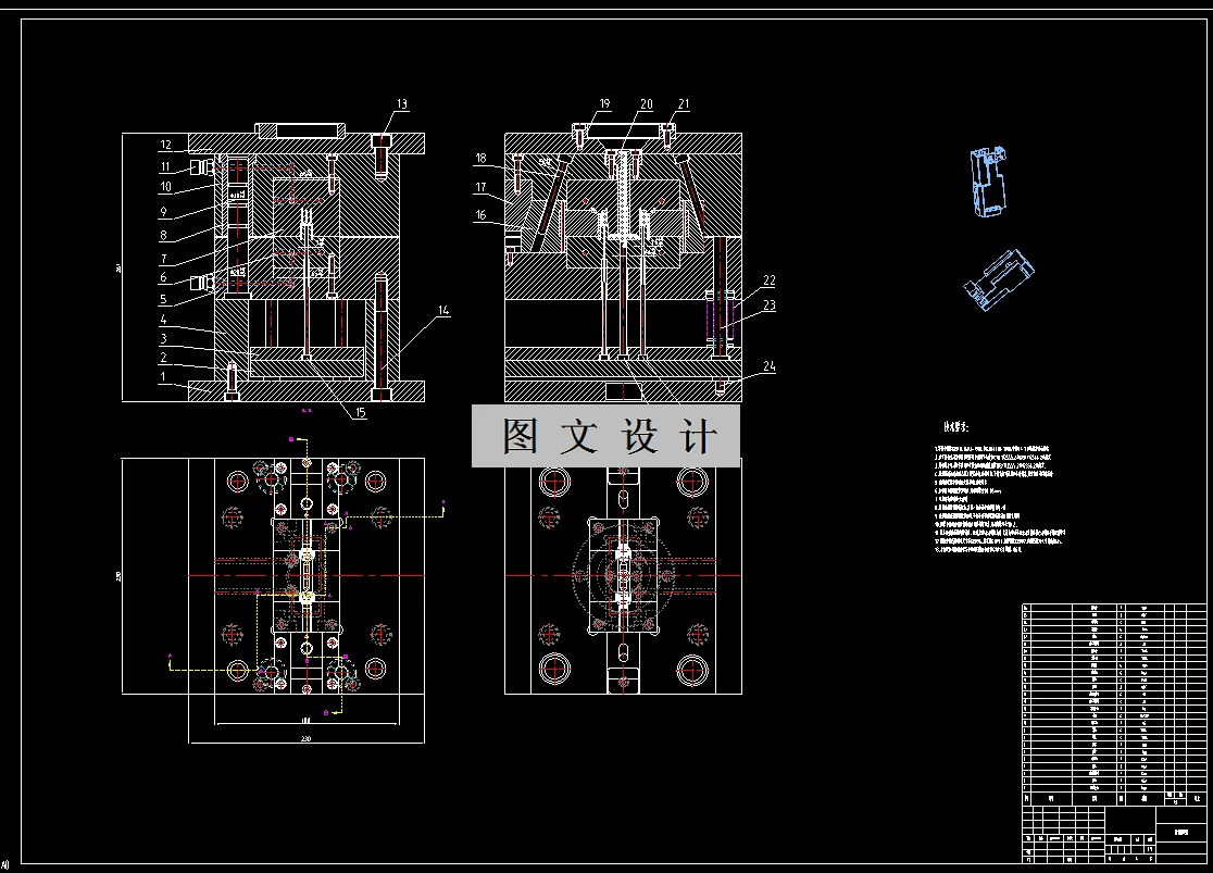 本次课题的目的是设计一副注射模具来生产车用防水接插件,从而实现大批量自动化生产。针对车用防水接插件的模具设计,经过查找资料且对此塑件进行结构与工艺分析,决定采用注射模。车用防水接插件采用ABS材料,该材料在日常生活中有着广泛的应用。此次设计从车用防水接插件的工艺性与相应的模具结构出发,对模具的成型零部件、注塑模推出机构、加热与冷却系统、浇注系统、排气系统、支承零部件的选择、注射机的选择以及相关参数的校核等都有着详细的计算过程。设计中主要运用PROE与CAD软件对车用防水接插件的三维模型与模具的装配图与零件图进行绘制,不但提高了工作效率且大大缩短了设计工作的时间,且加深了对软件的操作与运用。此次设计过程表明该模具能够达到车用防水接插件所要求的加工工艺。