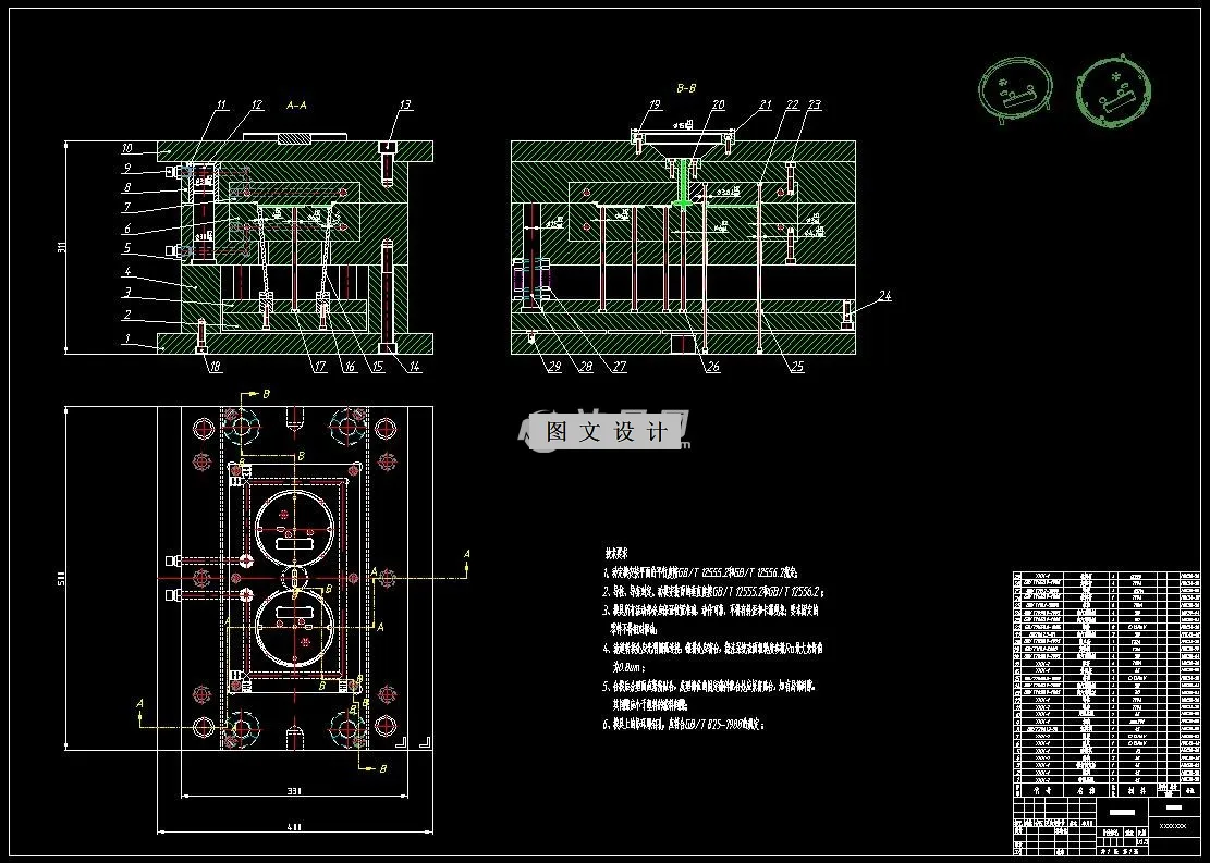 本文研究的是闹钟后盖的注塑成型模具设计。在本次模具毕业设计中首先根据指导老师所提供的实物,绘制出闹钟后盖三维图,通过分析它结构复杂程度以及尺寸精度要求来设计合理的模具方案,接着对产品的塑料原材料进行了选择并做出分析,初选了注塑机型号为XS-ZY-250。由于产品有装配要求,尺寸精度要求比较高,型腔数目决定采用一模两腔结构,型腔排布采用一字型排列方式,本次设计分型面位置选在了沿着产品底面形成的最大轮廓面处,由于产品表面要求不高,所以选择了侧浇口浇口类型,本次设计的脱模机构选择了推杆脱模方式。由于产品上存在两处倒扣结构,还需要为模具产品成型设计抽芯机构,为了保证产品的成型质量缩短冷却成型时间为模具设计了合适的冷却系统,最后对注塑机几个主要参数进行了校核。1129145