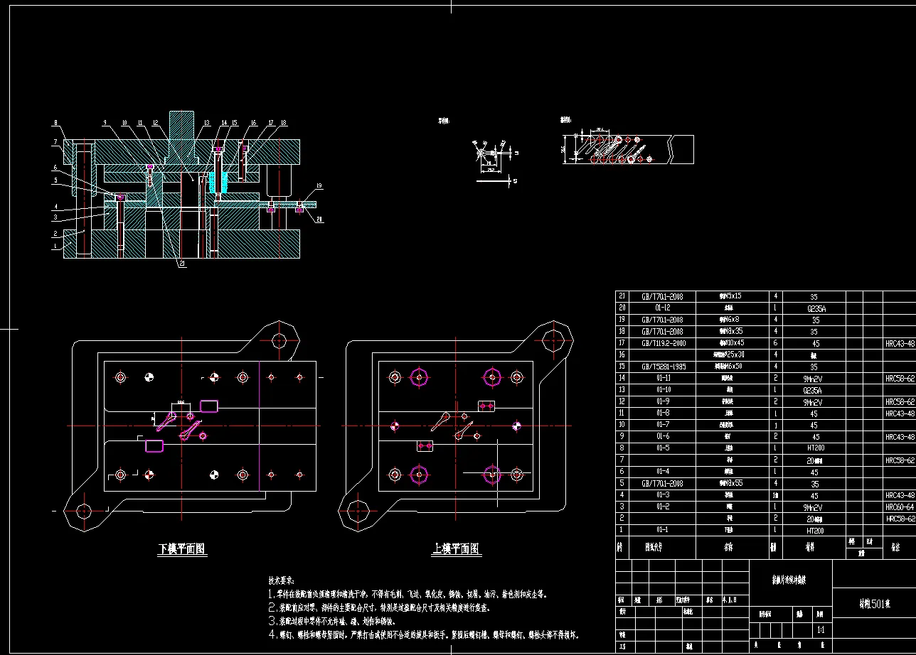 本设计为材料为H62黄铜片的冷冲压连续冲裁模的设计,,进行工艺分析,的工艺方案,模具结构的选择,工艺设计的计算后,选择设计排样,并画出排样图,力中心计算公差,,选择模座、垫板等零部件,选择合适的定位零件、尺寸合适的螺钉、销钉等标准紧固件,,然后并通过总装图,最终计。