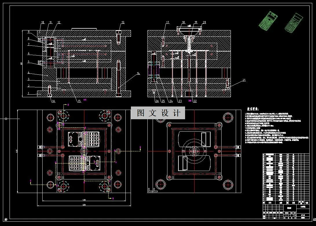 本文研究的是计算器面板的注塑成型模具设计。在本次模具设计中首先绘制出计算器面板三维图,通过分析它结构复杂程度以及尺寸精度要求来设计合理的模具方案,接着对产品的塑料原材料进行了选择并做出分析,初选了注塑机型号为XS-ZY-250。由于产品有装配要求,尺寸精度要求比较高,型腔数目决定采用一模两腔结构,型腔排布采用一字型排列方式,本次设计分型面位置进在了产品底面最大轮廓面积处,由于产品表面要求不高,所以选择了侧浇口浇口类型,本次设计的脱模机构选择了推杆和推管一起推出方式。为了保证产品的成型质量缩短冷却成型时间为模具设计了合适的冷却系统,最后对注塑机几个主要参数进行了校核。1089435