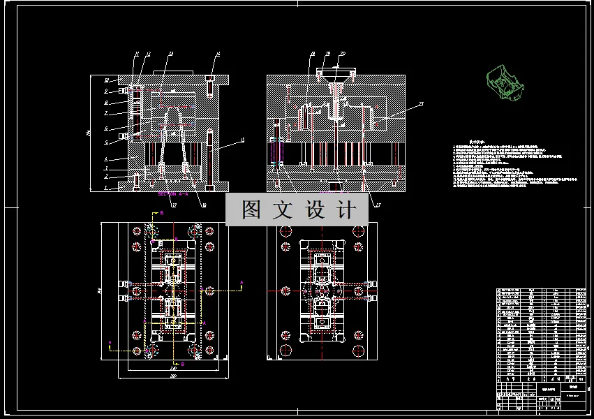 本设计是注塑模具设计为主题。其设计思路由参考多个生产事例而得出,设计内容是从零件的工艺分析开始的,根据工艺要求来确定设计的大体思路。
