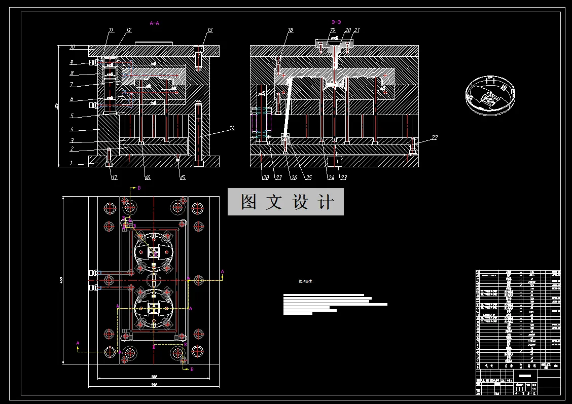 本设计是注塑模具设计为主题。其设计思路由参考多个生产事例而得出,设计内容是从零件的工艺分析开始的,根据工艺要求来确定设计的大体思路。在设计当中,很多东西都是自己原来所没有接触过的,尤其是前段时间所学的理论课知识与现在的自己动手操作设计,设计顺序开始是从零件的材料选择,接下是成型参数、密度、收缩率的确定,模具种类与模具设计的关系、塑件的尺寸精度与结构、注射机的选择、模具设计有关尺寸的计算(包括模具型腔型芯的计算及其公差的确定)、注塑机参数的校核、模具结构设计、模具冷却、加热系统计算、注射模标准件的选用及总装技术要求等内容。 其次是模具的结构,在模具结构的设计当中,首先设计的是模具的型腔结构,接下来是型芯结构、斜导柱、滑块、导向机构、复位杆、拉料杆、推件杆和推出机构,这样做的目的是为了规范化,更重要的是为了以后与制造人员的配合。既让自己有了良好的设计习惯,又能锻炼自己的配合意识。为以后工作做一次演练,这样更能体现理论与实践相结合的目的