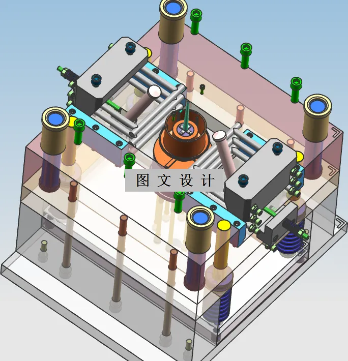 首先对座椅连接器外观特点和结构特点进行分析,确定好材料和模具设计方案,并且选择了合适的型腔数目,为一模一腔,在根据其塑件的体积,初步选择注塑机,所选注塑机型号为HTF250,然后确定了分型面最佳位置,由于塑件的外形存在一圈侧凹结构这一特点,设计了侧向分型抽芯机构,同时观察塑件外观结构,选择此类结构的塑料产品最合适的浇口形式为轮辐式浇口,接着对模具的冷却系统和脱模系统等进行设计分析,确定了环绕式冷却和推杆的顶出方式,最后根据已知结构零件尺寸确定好了模架结构,然后针对所选的注塑机型号进行相关参数校核。