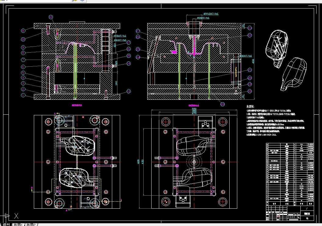 关键词:汽车后视镜壳体;塑料模具;模具设计;尺寸的校核与设计;