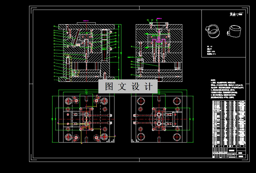 圆形塑料盖注塑模具设计,采用一模两腔结构,侧浇口进料,推板模结构简化操作。斜导柱滑块抽芯解决复杂脱模问题。模流分析优化塑料流动,确保产品质量。整体设计高效稳定,满足圆形塑料盖对尺寸精度、外观质量和生产效率的高要求。