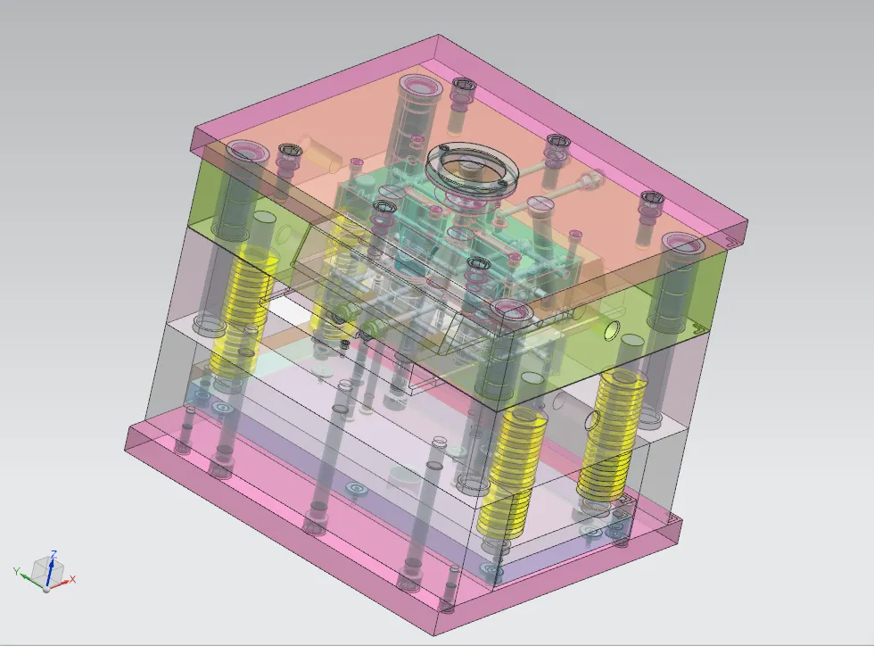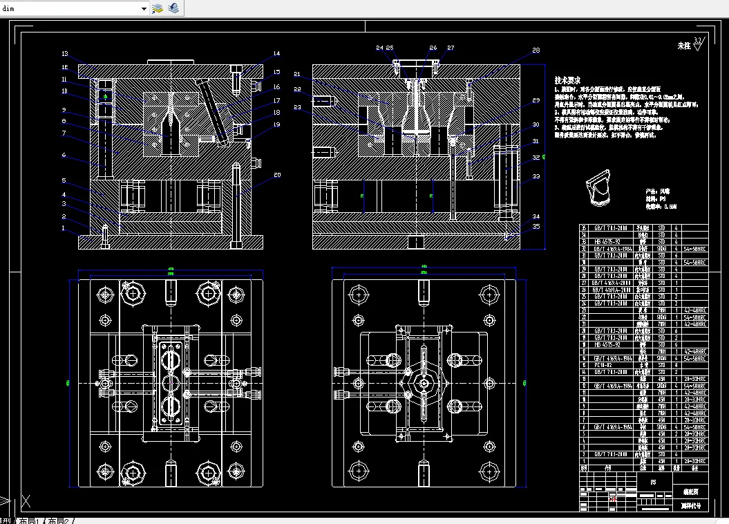 本次设计主要是根据塑件产品进行建模,根据塑料制品的要求,设计出符合要求的塑件,参照一般塑件结构设计,画出塑件建模图纸,然后通过了解用途,分析工艺性、尺寸精度等,进行合理的模具结果的设计。设计中的方案主要确定了塑件的分型面选择,确定好分型面后,根据塑件大小和结构特点进行型腔布局,主要通过几种方案对比得到最佳布局方案,然后进行浇注系统的分型设计哦,选择合适的浇口和流道大小。完成浇注系统后,还需要设置冷却系统和顶出机构,冷却系统设计主要考虑的是冷却均匀,保证塑件成型周期满足要求,顶出系统需要满足塑件可以成功顶出,进行批量生产,不出现产品缺陷等,最终需要选择合适的模架大小等完成整个注塑模具的设计。并且对各种参数校核。进行工程图得绘制,整理出计算过程和设计总结,完成整个设计。