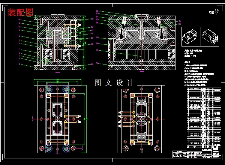 根据塑料制品的要求,了解塑件的用途,分析塑件的工艺性、尺寸精度等技术要求,考量塑件制件尺寸。本模具采用一模二腔,搭底浇口进料,注射机采用海天HTF200XB型号,设置冷却系统,CAD和UG绘制二维总装图和零件图,选择模具合理的加工方法