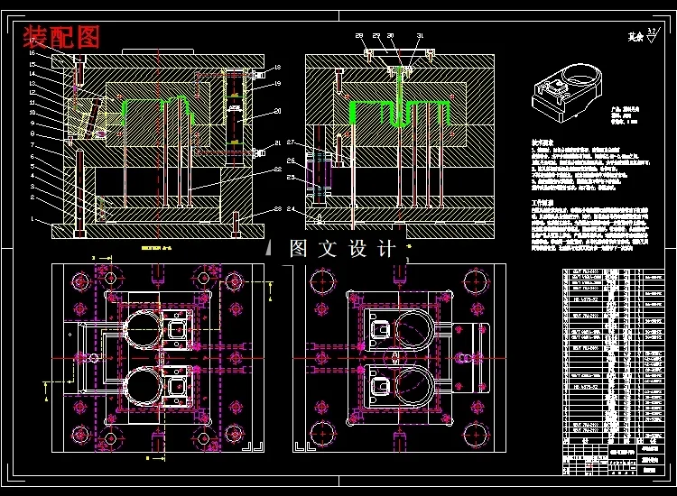 根据塑料制品的要求,了解塑件的用途,分析塑件的工艺性、尺寸精度等技术要求,选择塑件制件尺寸。本模具采用一模两腔,侧浇口进料,注射机采用海天160X2C型号,设置冷却系统,CAD和UG绘制二维总装图和零件图,选择模具合理的加工方法。附上说明书,系统地运用简要的文字,简明的示意图和和计算等分析塑件,从而作出合理的模具设计。 关键词:机械设计;模具设计;CAD绘制二维图;UG绘制3D图,注射机的选择