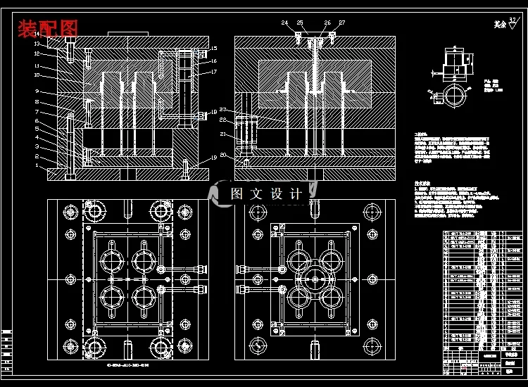 根据塑料制品的要求,了解塑件的用途,分析塑件的工艺性、尺寸精度等技术要求,考虑塑件制件尺寸。本模具采用一模四腔,侧浇口进料,注射机采用HTF 160×2A型号,设置冷却系统,CAD和CAD2008绘制二维总装图和零件图,选择模具合理的加工方法。附上说明书,系统地运用简要的文字,简明的示意图和和计算等分析塑件,从而作出合理的模具设计。 关键词:机械设计;模具设计;CAD绘制二维图;CAD2008绘制2D图。