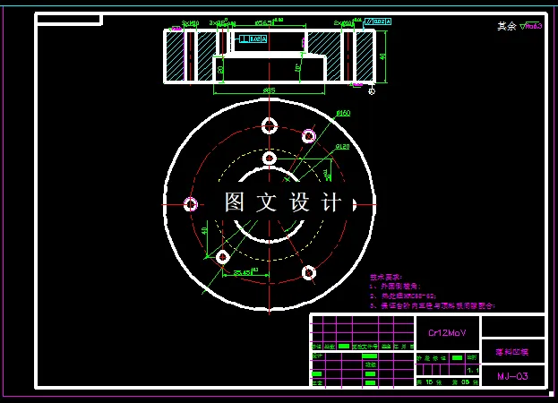 此端盖零件,尺寸比较小,是个圆形结构拉深件,底面是平面,形状规则,查表确定切边参数,然后计算展开尺寸以及拉深系数,确定一次拉深成型,因此将落料和拉深,合并成一套复合模,计算模具的外形尺寸,刃口尺寸,选择标准模架,然后绘制模具结构图和零件图,记录所计算的冲压力的大小,选择压力机型号。
