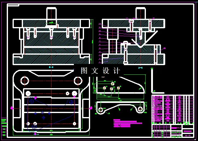 此座椅架零件,单独看属于L型弯曲件,但是外形不规则,由各种圆弧过渡而成,内部孔比较多,不规则分布,因此需要落料和冲孔合并,单独设计一套弯曲模,展开计算后,通过合理排样,计算模具的各个尺寸,设计落料冲孔倒装复合模,并绘制冲裁模和弯曲模的结构图和零件图。