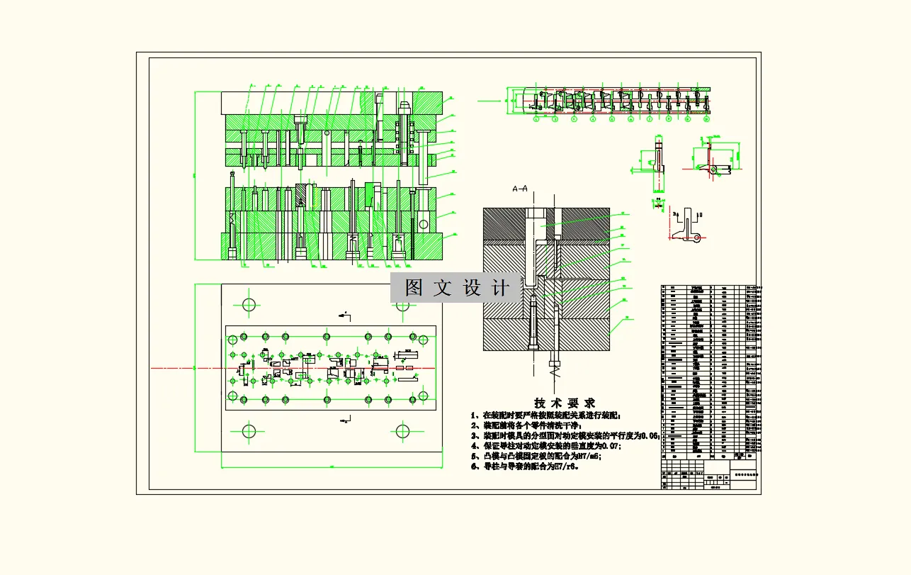 模具结构相对复杂,但是也容易理解。计算过程比较繁琐,计算后选择合适的模架和压力机,绘制模具装配图,