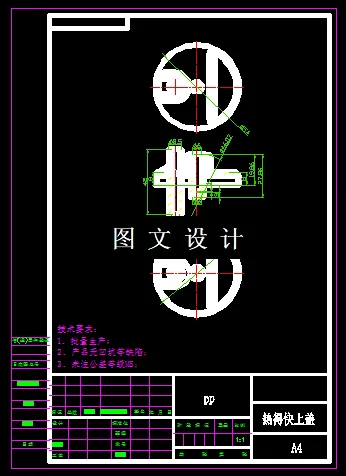 此零件是家用常见的热得快的上面盖子,外形是圆形,形状复杂,因此选择注塑工艺最合理,且是绝缘体。结合工件形状分析,选择合适的材料分析,选择合适的模具结构,设计一模两腔,两板模结构,绘制模具三维图和二维图。