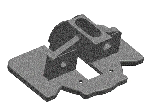 本次设计的零件为锁扣,零件尺寸比较小,但是形状不规则,侧面有缺口,需要设计抽芯机构,结合尺寸,选择一模四腔,对称分布,四处设计抽芯,计算模具尺寸,选择龙记模架,利用三维软件绘制模具图纸,并转成2D工程图。