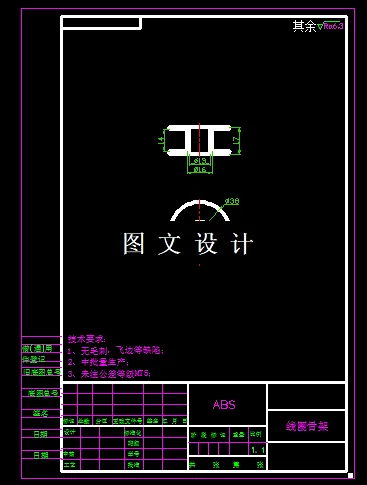 所设计的零件时个小型的线圈骨架,外形比较小,且对称,零件成工字形,因此,设计模具时要设计抽芯,而且时整体哈夫结构,设计这样的模具,设计两板模结构,详细尺寸后绘制模具结构图。