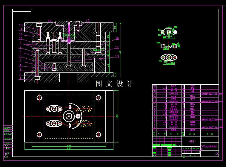 本次设计的零件为PCB支架,工件材料采用聚甲醛材料,收缩率为0.3%~0.7%,比较小,工件尺寸又较小,为降低成本,提高生产效率,采用一模四腔,并不对制品进行后续加工,工件制品表面光洁度没有特殊要求,为提高成型效率采用侧点浇口,具体见CAD图纸。