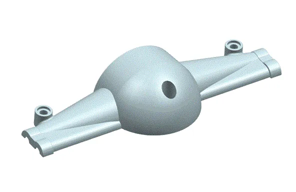 本次设计的零件为塑料扳手,零件壁厚尺寸比较大,平均达到10mm,拐弯处采用圆角半径为3mm的圆弧过渡,侧面有两个圆孔,因此有两面需要设计侧向抽心机构,才能实现自动脱模,提高生产效率,具体见CAD图。