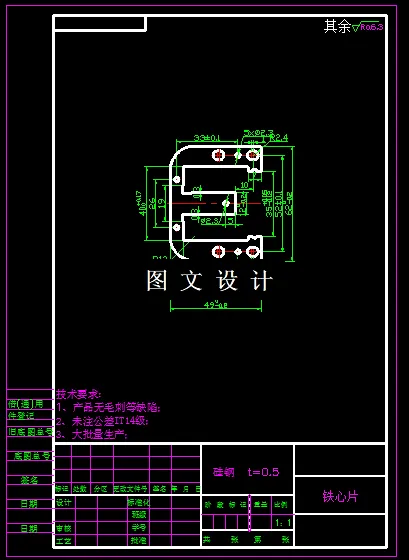 由于本设计中产品外形是比较规则。产品上有圆孔和腰孔,所以要先冲孔,本次设计采用侧刃定位宽度,导正孔定位送料步距,冲侧刃的同时可以冲小孔,以小孔作为导正冲其余孔,然后以导正孔为基准,落料外形,工件长度和宽度尺寸不同,所以可以设计两个不同的方法,通过对工件材料利用率的比较,选择更合理的方案,具体见模具图纸,动态视频。