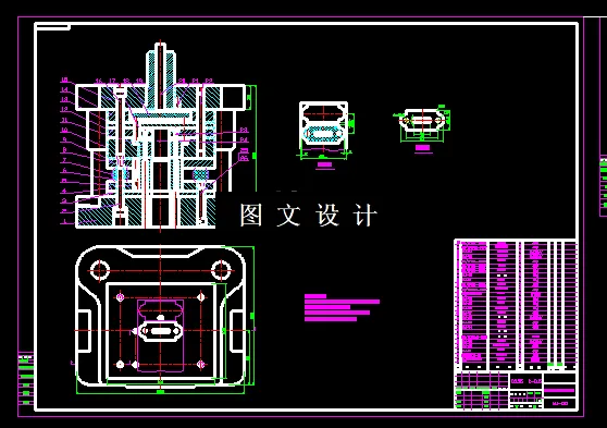 本次设计的夹片,形状简单,而且规则,因此工艺一眼就能看出,采用落料冲孔复合模,弯曲模,通过对展开尺寸,工序冲压力计算,压力中心及压力机选择,刃口尺寸计算,模具外形计算等,绘制出合理的模具结构,3D立体图,编制设计说明书。