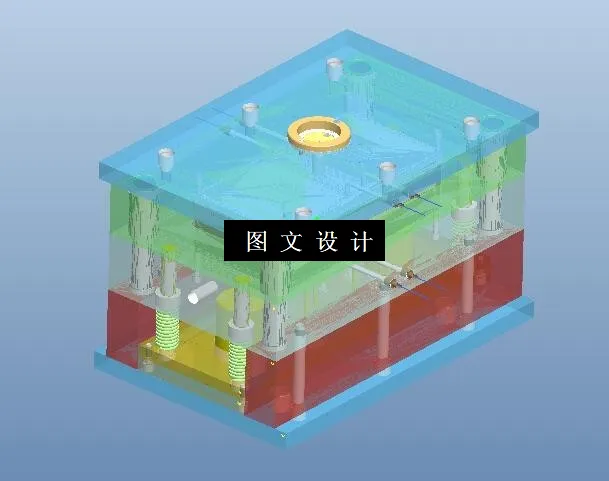 本次设计是常见的热水瓶的瓶底,从零件图形分析,本模具设计为一模两腔,对称排列,根据塑件结构形状,推出机构拟采用顶杆推出的推出形式。浇注系统设计时,流道采用对称平衡式,浇口采用侧交口,且开设在分型面上,内部螺纹采用手工旋转式脱模机构。