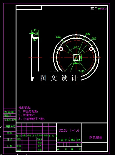 针对工件防风筒盖,根据形状分析,工件有落料、拉伸、切边、冲孔等工序,结合计算和工序的合理安排,本次设计,可以将落料拉深一起合并成落料拉深模,切边单独一副,产品上孔到拉伸边缘距离太近,需要单独设计冲孔模,所以本产品共三道工序,设计内容包括平面图,设计说明书。