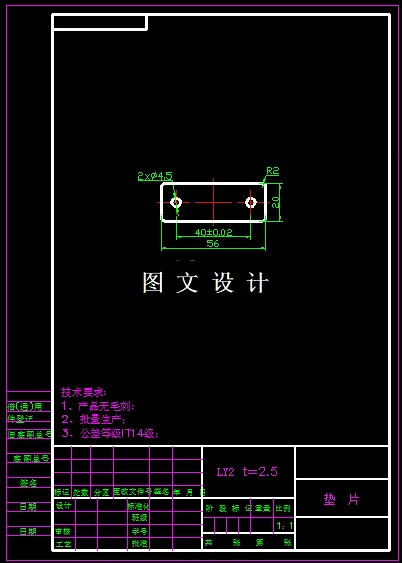 该工件形状为平板,只需要设计其冲裁模即可,从形状分析,该零件形状简单,且对称,避免复杂形状的曲线,把冲裁件设计成少、无废料排样的形状,以减少废料,工件形状为矩形,直角处用圆弧连接,以利于模具加工。