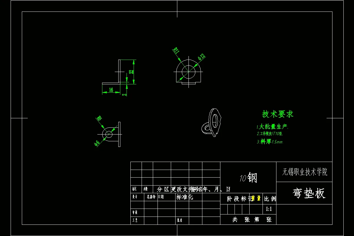 轿车转向灯灯罩多工序冲压模具设计,包括装配图,非标零件图,设计计算。 该工件为带凸缘形拉深件,拉深高度不大,中间部分为反拉伸,预计一次拉深能够实现,不过具体拉深系数需要经过计算得出结果