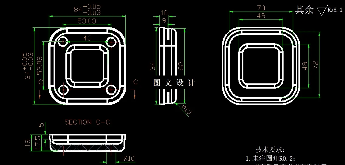 此设计为盒盖注塑模具设计(17150),采用一模二腔,侧浇注口进行填充,提供三维(UG格式)+二维装配图1张及主要零件图20张+模流分析+设计报告文档( 文档约1.8W字 57页)。主要论述了塑料模具的成长状态,详细的解释了零件模具的重要性与本次设计的意见选择方形盒塑件制件尺寸。确定模具布局并选择注塑机,开端确定了工艺前提、浇注系统和冷却系统,本模具采取一模二腔,确定合理的成型工艺前提、浇注系统和冷却系统的尺寸。设计本模具时候采取的方法大多数是使用CAD软件进行测绘,进行了三维造型和建模。根据我们三维建模出来的塑件图,详细的分析了这个塑件的结构,并且进行了前模和后模成型系统分分模;设计斜向顶杆机构;以及各个系统的结构。采用了一模一腔配合点胶口的浇口这种型腔布局的结构形式;另外,设计过程中利用了MOLDFLOW软件进行工艺优化;最后,对我们设计好的盒盖的三维模型图,进行转换和制图,出二维的装配的电子图档,以及塑件图,非标零件图这类工程图;根据设计好的图纸,进行最后的注塑机确认。1769402