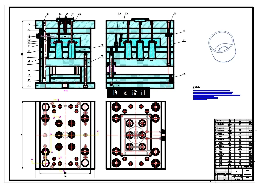 本文研究的是桶形件的注塑成型及模流分析。首先分析产品的成型工艺,然后根据产品结构,设计如何分型,及型腔数目,进胶方式。过程中要充分考虑到零件的加工方法,尽量简便精准,并进行相关尺寸的计算和校核,再设计浇注系统,冷却系统,排气系统,脱模机构,导向机构,以及模架的选择。通过CAD,ug ,等软件辅助分析设计是否合理,选择合理的工艺参数和设计方案。