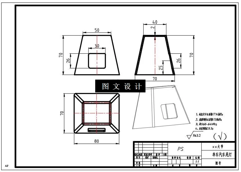 本文研究的是共享汽车尾款的注塑成型及模流分析。首先分析产品的成型工艺,然后根据产品结构,设计如何分型,及型腔数目,进胶方式。过程中要充分考虑到零件的加工方法,尽量简便精准,并进行相关尺寸的计算和校核,再设计浇注系统,冷却系统,排气系统,脱模机构,导向机构,以及模架的选择。通过CAD,ug ,等软件辅助分析设计是否合理,选择合理的工艺参数和设计方案。