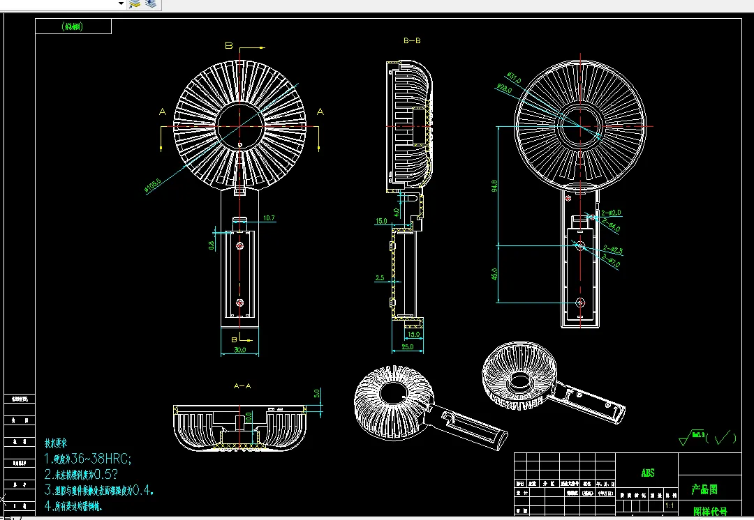 关键词:塑料用品;注塑模具;小风扇外壳;型芯;型腔