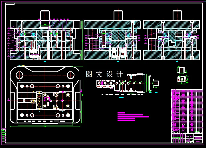对接触簧片级进模的设计是本设计的主要内容,在本说明书中主要介绍了工件的工艺分析和排样方法的对比选择。之后计算了冲压力和冲压中心的,设计了模具的结构,包括凸凹模、凸模固定板、垫板、卸料部分、凸凹模工作尺寸及冲裁间隙,另外在最后进行了剩余模具零件的设计和强度校核。