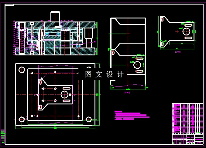 本套模具采用标准模架,其中绝大部分成型零件都采用标准件,这样模具都互换性很好,有利于模具的修整,装配。对于本零件,零件表面比较复杂,所以在模具的设计中,要充分考虑到各个成型零件的装配问题。