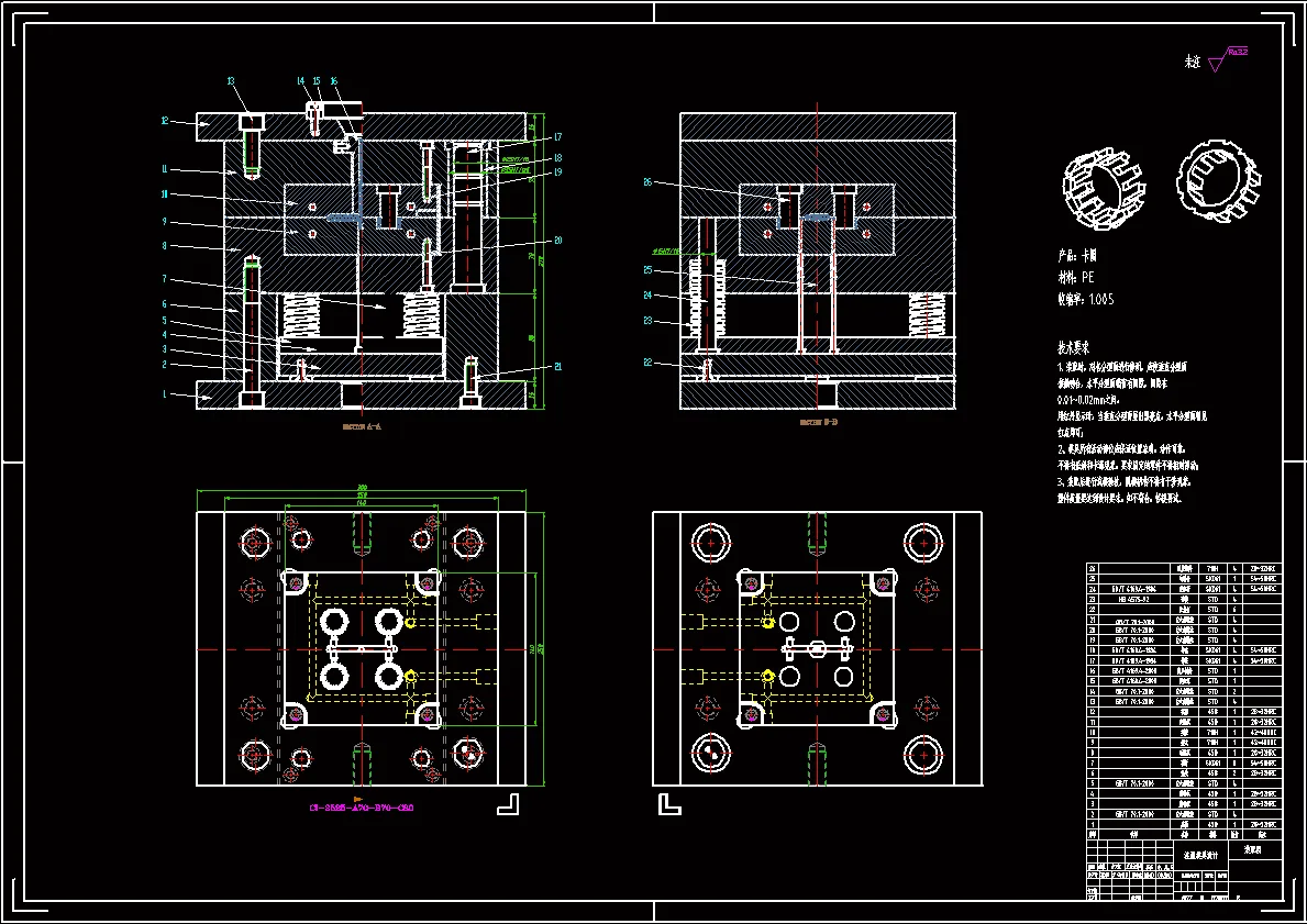 任务是完成垫片零件的冲压模具设计和制造仿真。通过多种方案的比较,本设计采用的是连续模结构,模具中设置了冲孔、落料,弯曲,翻边等工位。