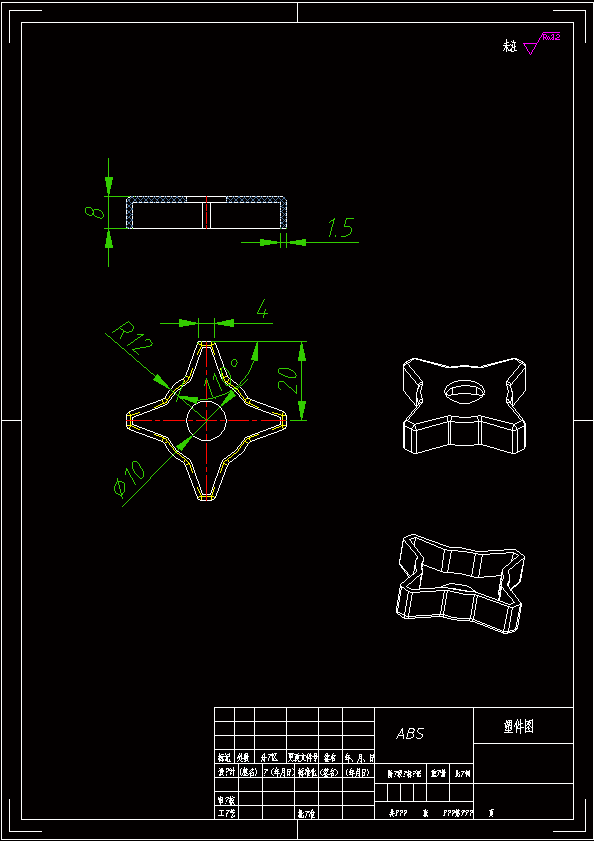 本套模具采用标准模架,其中绝大部分成型零件都采用标准件,这样模具都互换性很好,有利于模具的修整,装配。对于本零件,零件表面比较复杂,所以在模具的设计中,要充分考虑到各个成型零件的装配问题