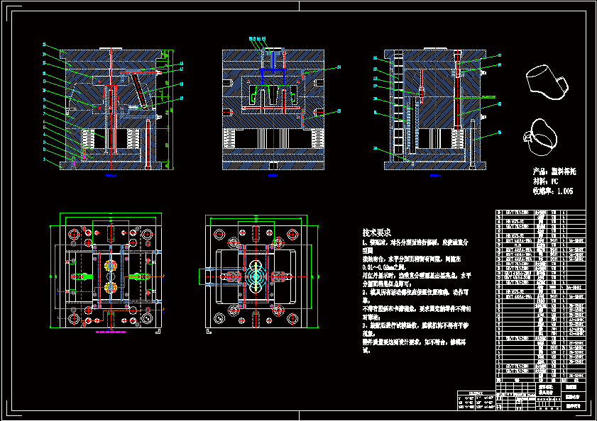 据塑料制品的要求,了解塑件的用途,分析塑件的工艺性、尺寸精度等技术要求,考量塑件制件尺寸。本模具采用一模二腔,点浇口进料,注射机采用HTF160X2B型号,设置冷却系统,CAD和UG绘制二维总装图和零件图,选择模具合理的加工方法。附上说明书,系统地运用简要的文字,简明的示意图和和计算等分析塑件,从而作出合理的模具设计。