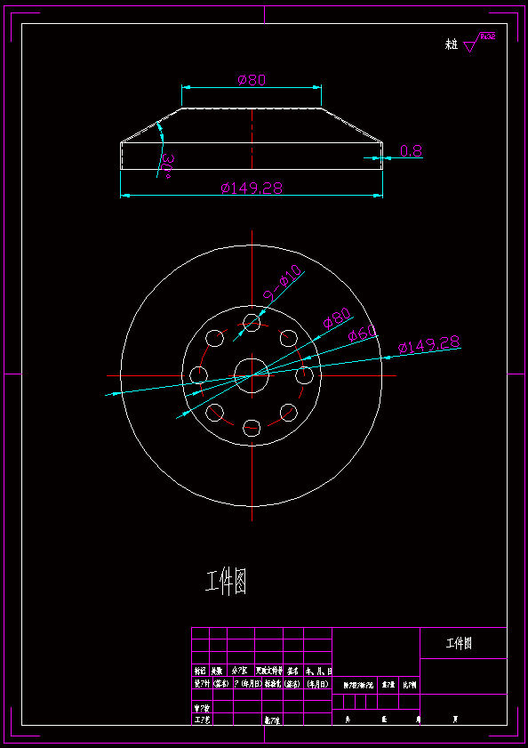 本次设计工件为香薰炉盖,是生活中常见的拉深件,通过将平板的毛坯经过模具的拉深工序制成的中空形式,本次设计整体结构简单,位于中心轴对称,没有其他的异形和复杂的难以成型的结构。 工件的厚度为0.8mm,材料1Cr18Ni9Ti,由于本次设计任务书对于工件的精度没有具体要求,因此采用通用的IT14即可,在后续设计的工艺计算中将运用IT14精度的标准进行计算。