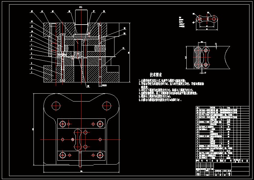 垫片具有直线和圆弧构成的简单外形,上面有四个圆孔。外形依靠落料完成,冲孔依靠冲孔工序来完成。通过这个模具的设计。cad软件绘图