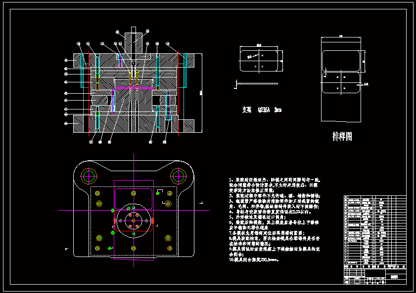 通过对正装式复合模和倒装式复合模两种优点、缺点及适用范围的分析比较,正装式复合模适合于冲制材质较软或板料较薄的平直度要求较高的冲裁件,还可以冲制孔边距离较小的冲裁件。而倒装式复合模不宜冲制孔边距离较小的冲裁件,但倒装式冷冲模结构简单,可以直接利用压力机打杆装置进行推件,卸件可靠,便于操作,并为机械化出件提供了有利条件,故应用十分广泛。综上所述,该制件结构形状简单,精度要求较低,孔边距较大,宜采用倒装式复合模。