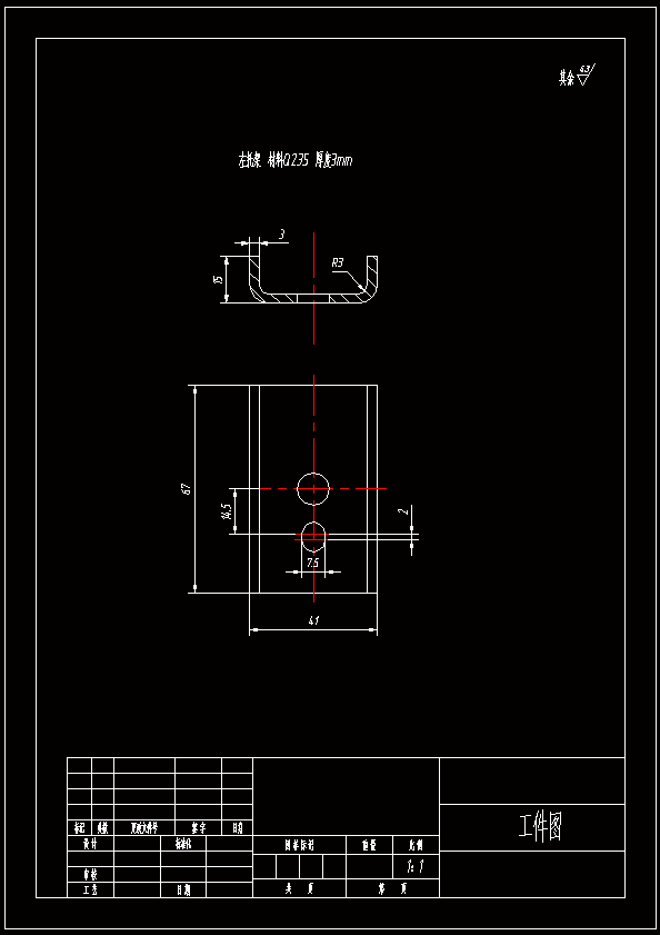 U形件的翻边工艺与模具设计 所设计的是U形件的翻边工艺与模具设计,这套模具是翻边模,属于冲压模具的一种,但比起冲压模,本套模具突出了翻边模的特点。U形件采用单工序冲模,需要3道工序,分别是落料,冲孔、翻边。我所设计时为第三道工序的翻边模。
