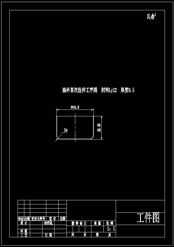 油杯冲压模具设计 通过一个落料拉伸复合模来完成前两个工序,后面采用单工序拉伸模,设计结构紧凑的落料拉伸复合模。采用复合模,模具设计简单,能够采用最简单的设计,结构上也比较紧凑,能够满足我们生产的需要。