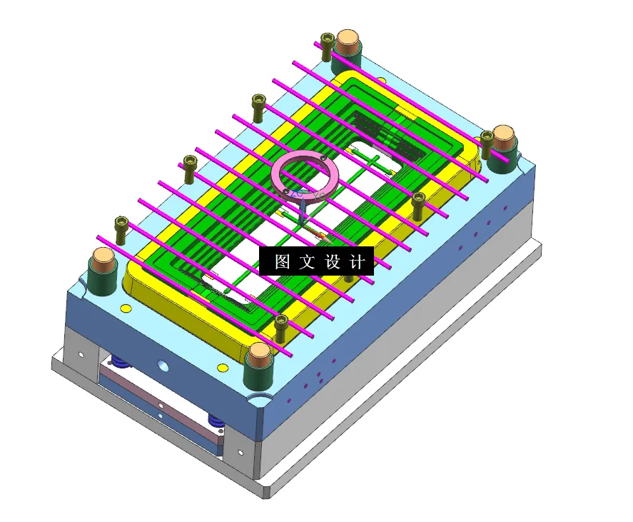 商用冷柜箱面框塑件注塑模具设计 模具结构是一个模具两个腔室,在模具的侧边的面上安置的进料口,在模具里面的注射剂使用的型号是HT530×A,这个模具是具备冷却功能的。加工的顺序合理的安排,将总装配图纸还有零件图都用电脑的绘图软件画出来。